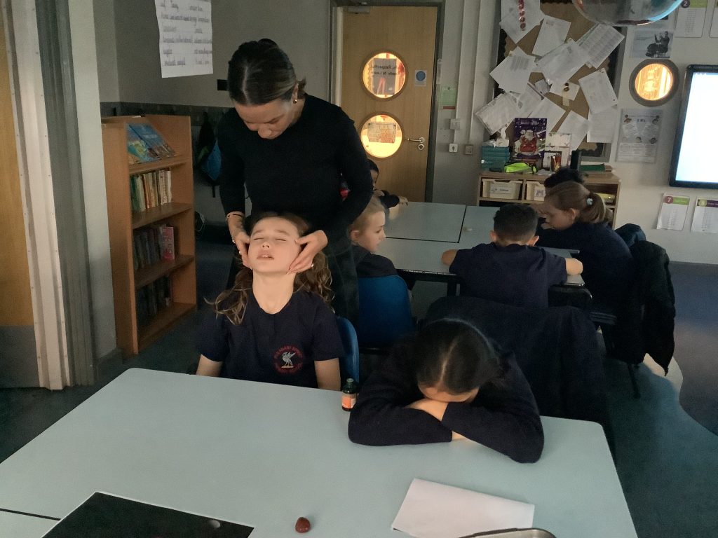 The children enjoyed the final yoga session of the term and year with a special massage from Georgia. The class were relaxed and enjoyed the smell of the oil!