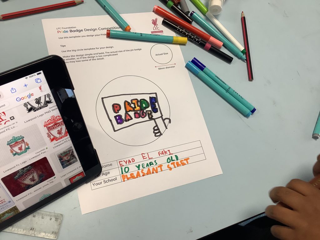 The children used art skills today to think about positive mental health strategies. They entered a Pride Badge design competition!