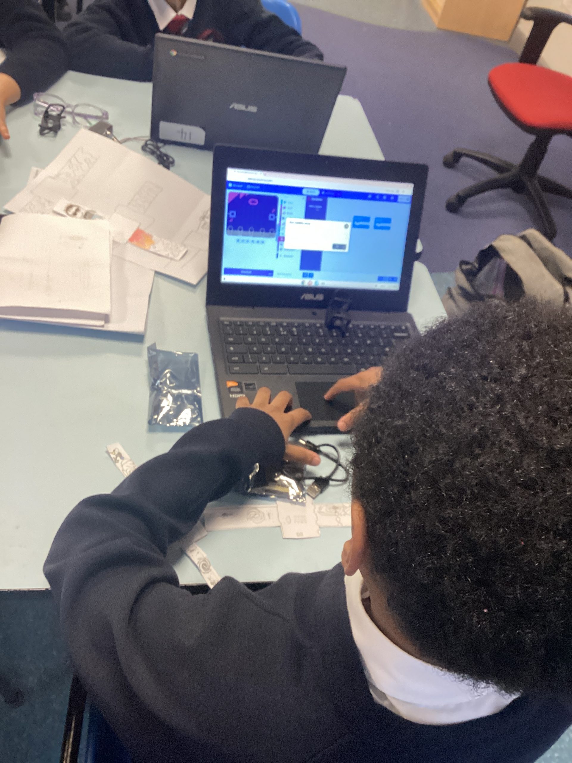 The children used Microbits this afternoon, creating code to display a welcoming message on the Microbit before experimenting with LEDs.