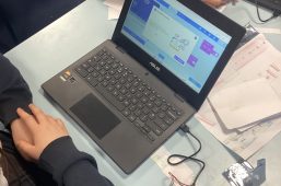 The class continued using variables this afternoon as they coded a maths quiz on Scratch.