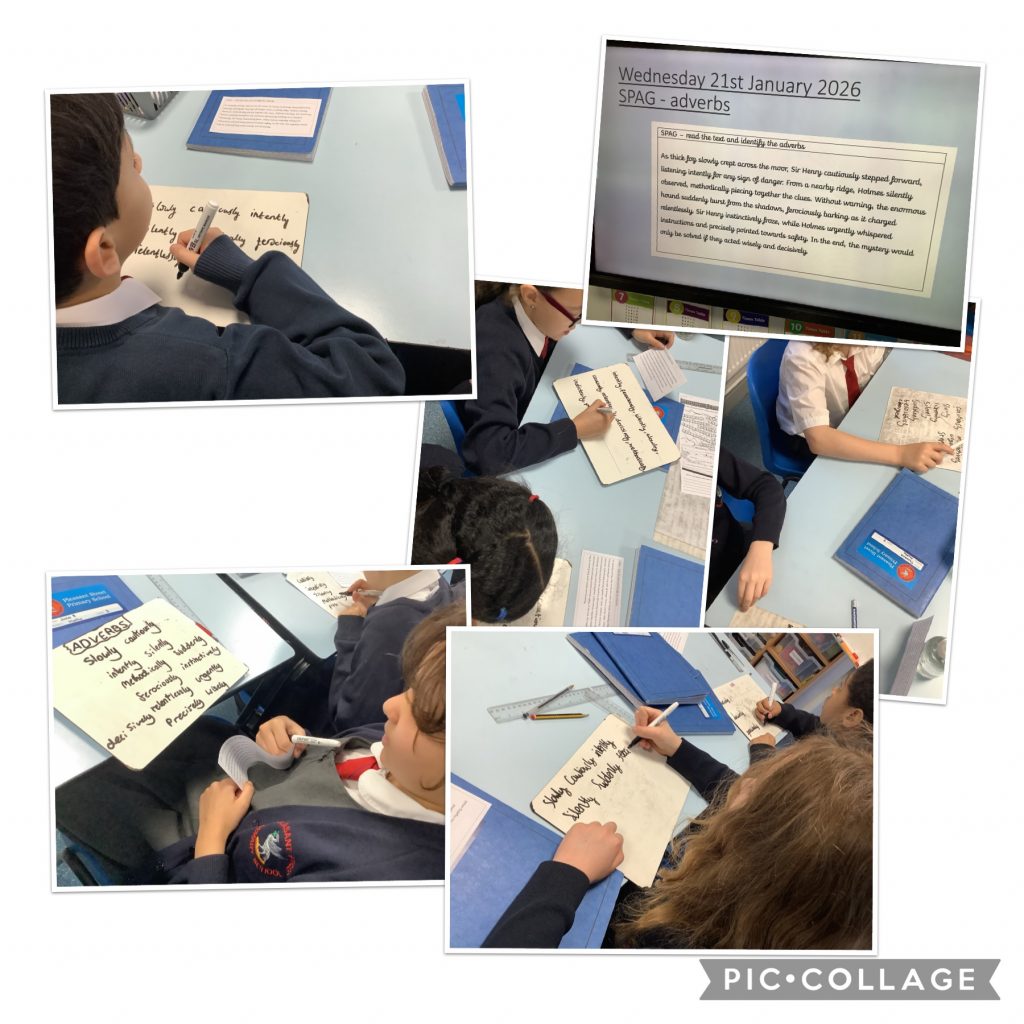 The class used a text based on The Hound of the Baskervilles to identify adverbs this morning.