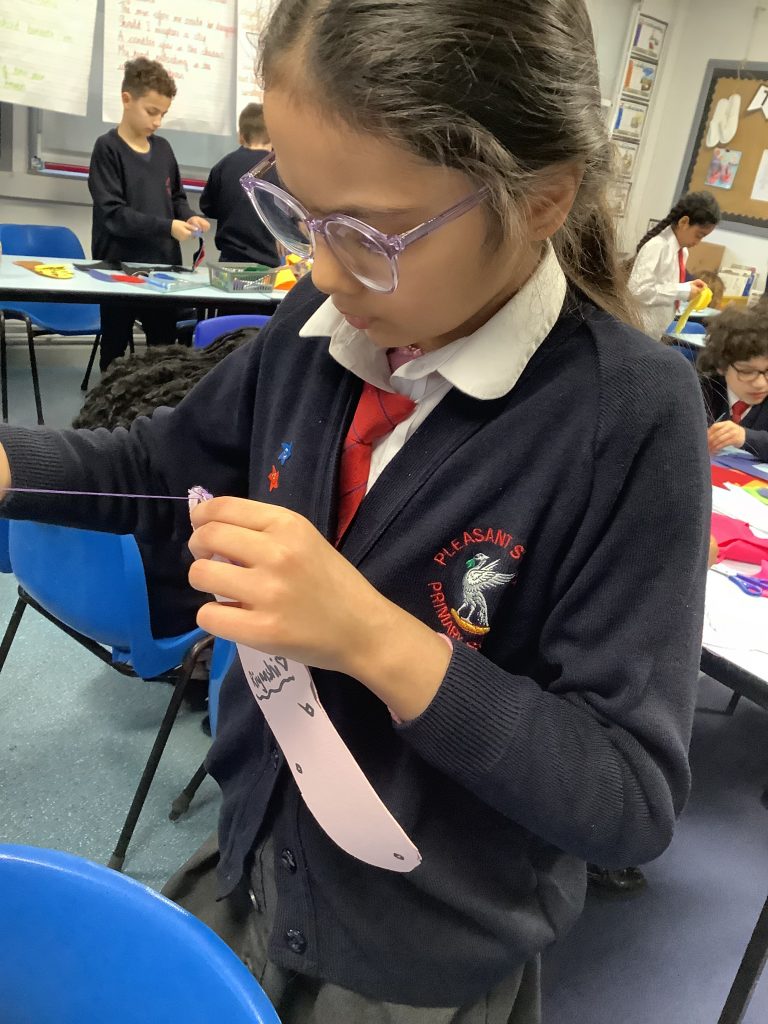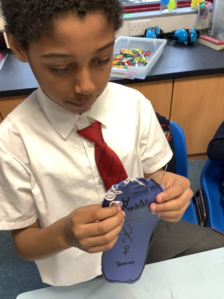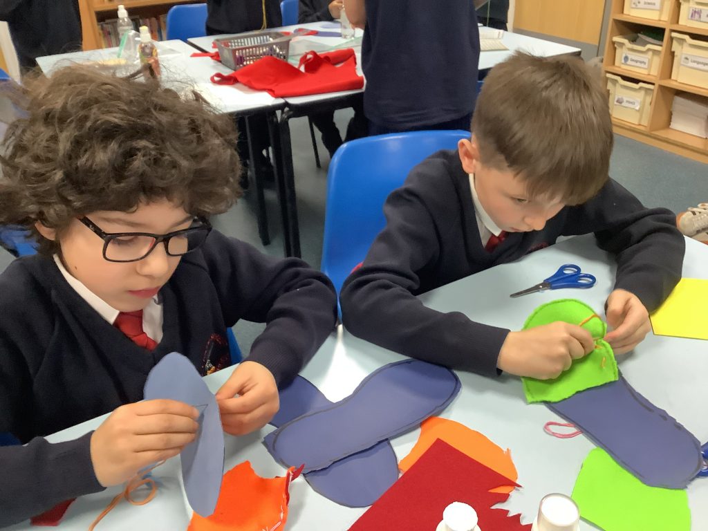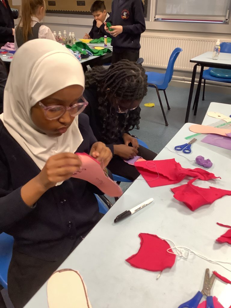 The class spent the afternoon practising their sewing skills, the running stitch proving to be very useful!