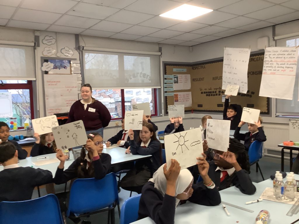 The class began work on their Singtastic project this morning, creating lyrics around the theme of weather. The lyrics will be used to produce songs to perform.