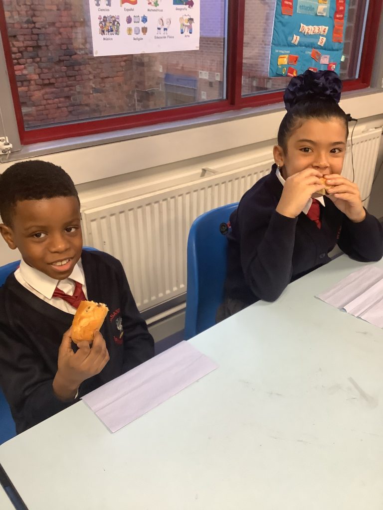 This morning we got to enjoy our treat breakfast, with a selection of pastries, pancakes, cheeses and a lovely, colourful fruit salad. Miss Mira played some of our favourite songs as we ate and breakfast felt like a party. A great way to celebrate our last Wednesday in Year 4!