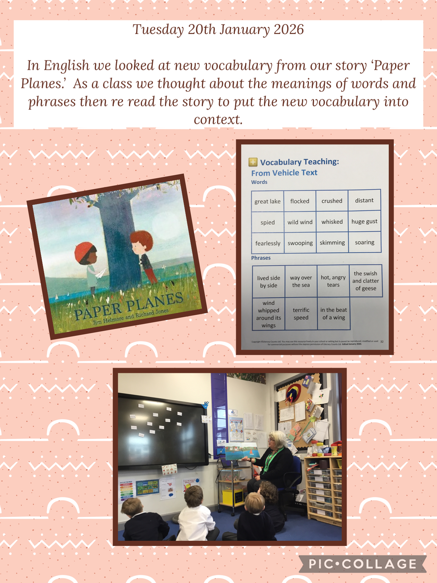 Beginning to read our new class text – Paper Plane by Jim Helmore, recalling the story and recapping of ways the children can keep in touch with each other.