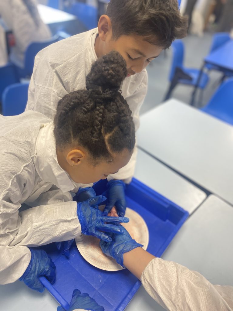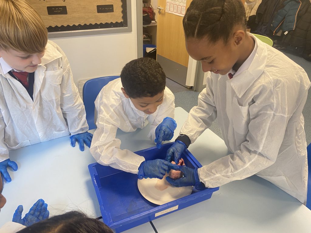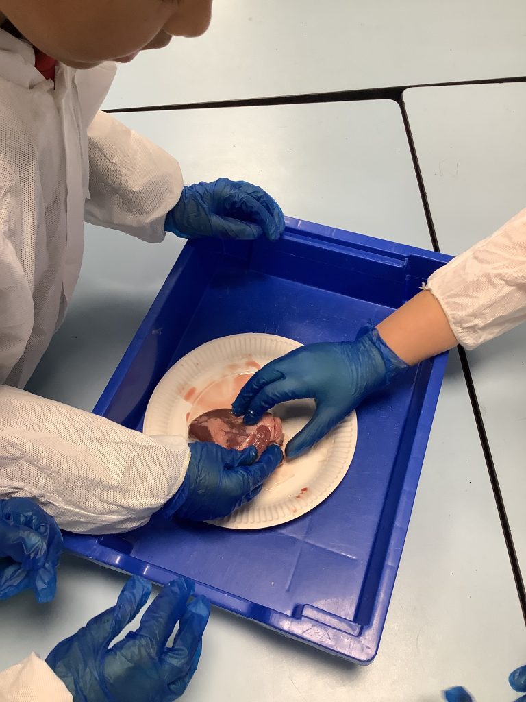 In today’s lesson we had the chance to observe a lambs heart. We looked at the heart to compare how it is similarities to the human heart. We noticed the 4 chambers and the aorta and then we had the opportunity to hold the heart to take a closer look. Some of us used the opportunity to feel inside the heart, observing valves, chambers and veins. Well done Year Six!