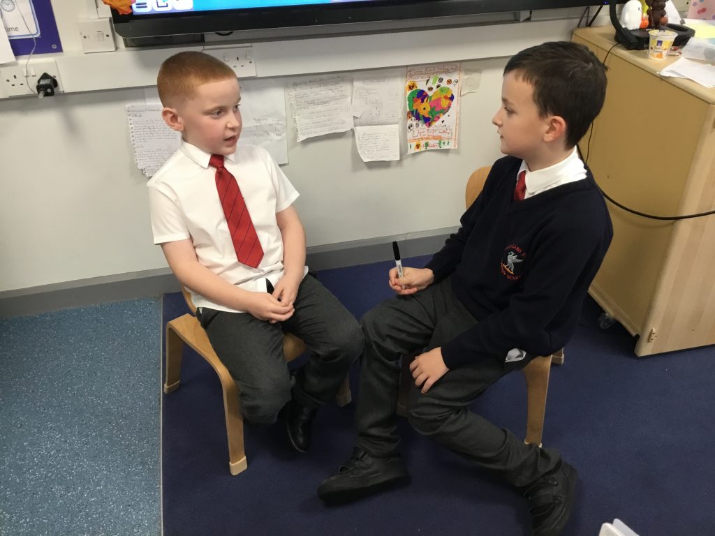 Today we had Hogarth in the hot seat answering questions about the Iron man and how he feels. Uploaded videos on Seesaw .