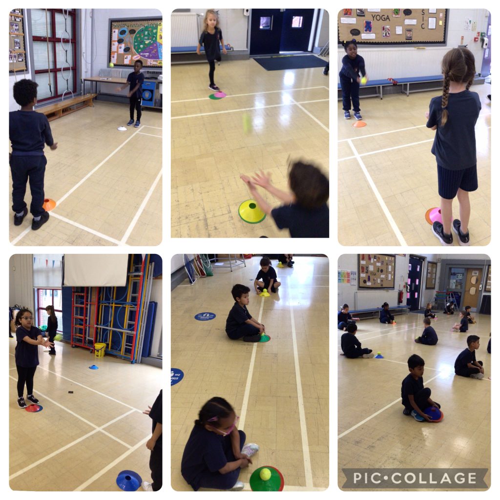 Class 2 enjoyed developing their throwing and catching skills. We focused on pushing the ball with both of our hands, releasing the ball when your hands are pointing at the target and using two hands and wide fingers to catch the ball. We applied our previous knowledge to enjoy and have fun with our partners. In groups of four we took turns to throw the ball at a cone, once we had successfully hit the target we could turn the cone over. We explored using different throws such as underarm, overarm or chest pass. To challenge ourselves we used different size balls and discussed if this made the activity difficult or easier.