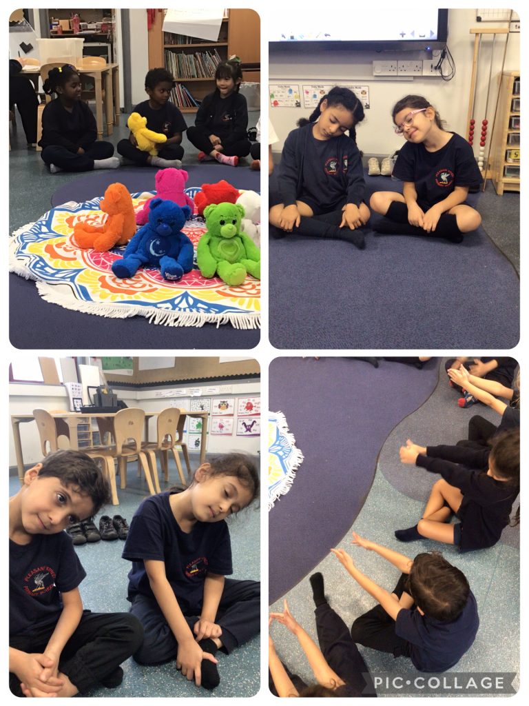 What are you grateful for? Children had a chance to talk about the things that they are grateful for. Coming to school , my sisters and brothers, football and going to the park was just a few answers we had. We then did some stretches and breathing techniques to get us started.