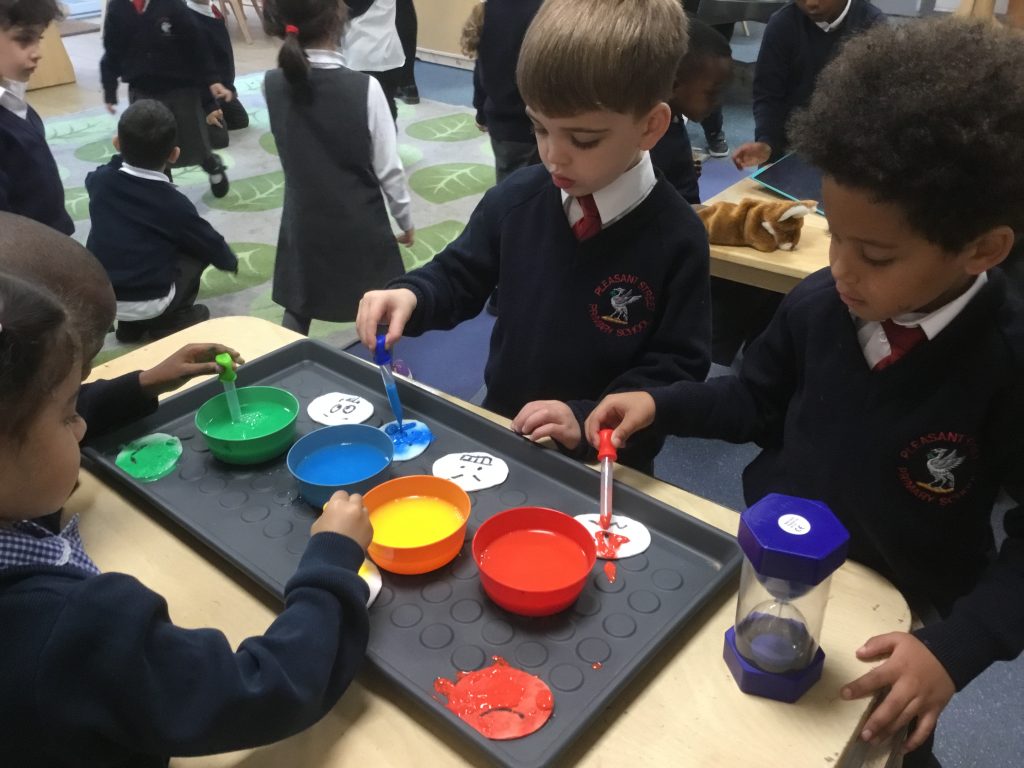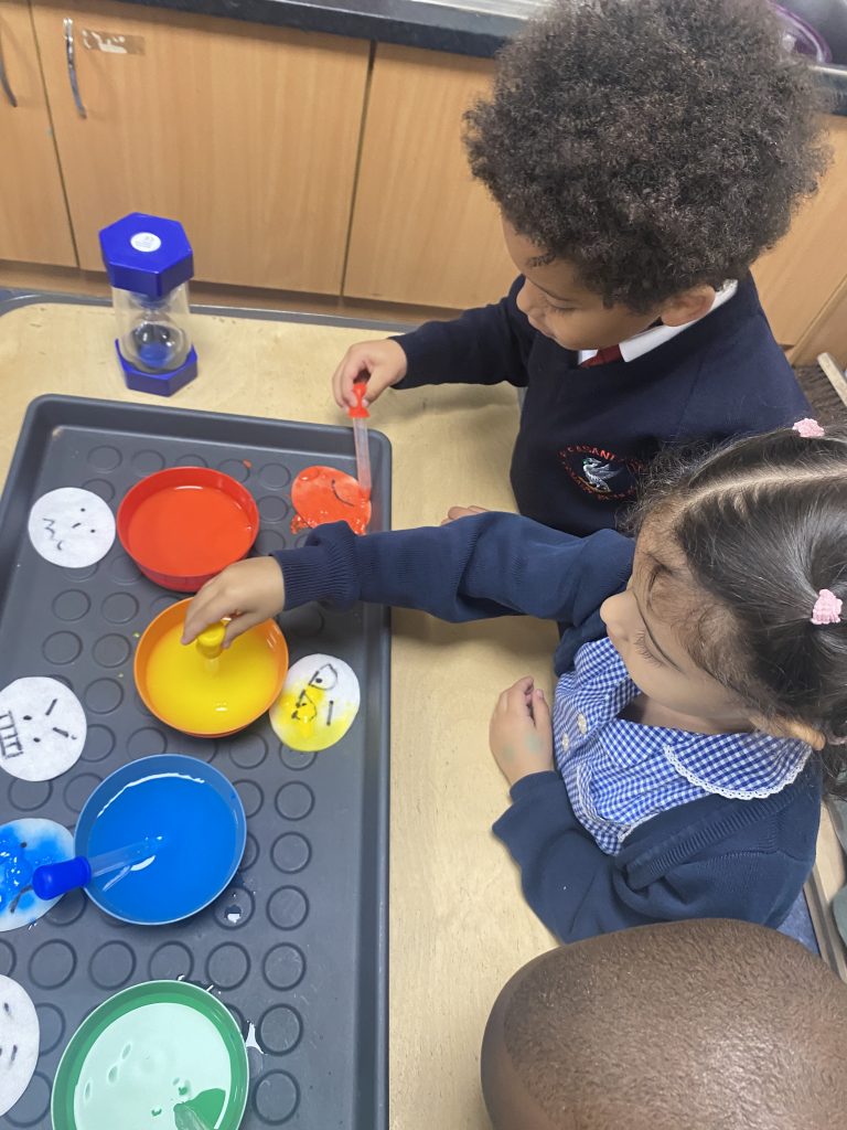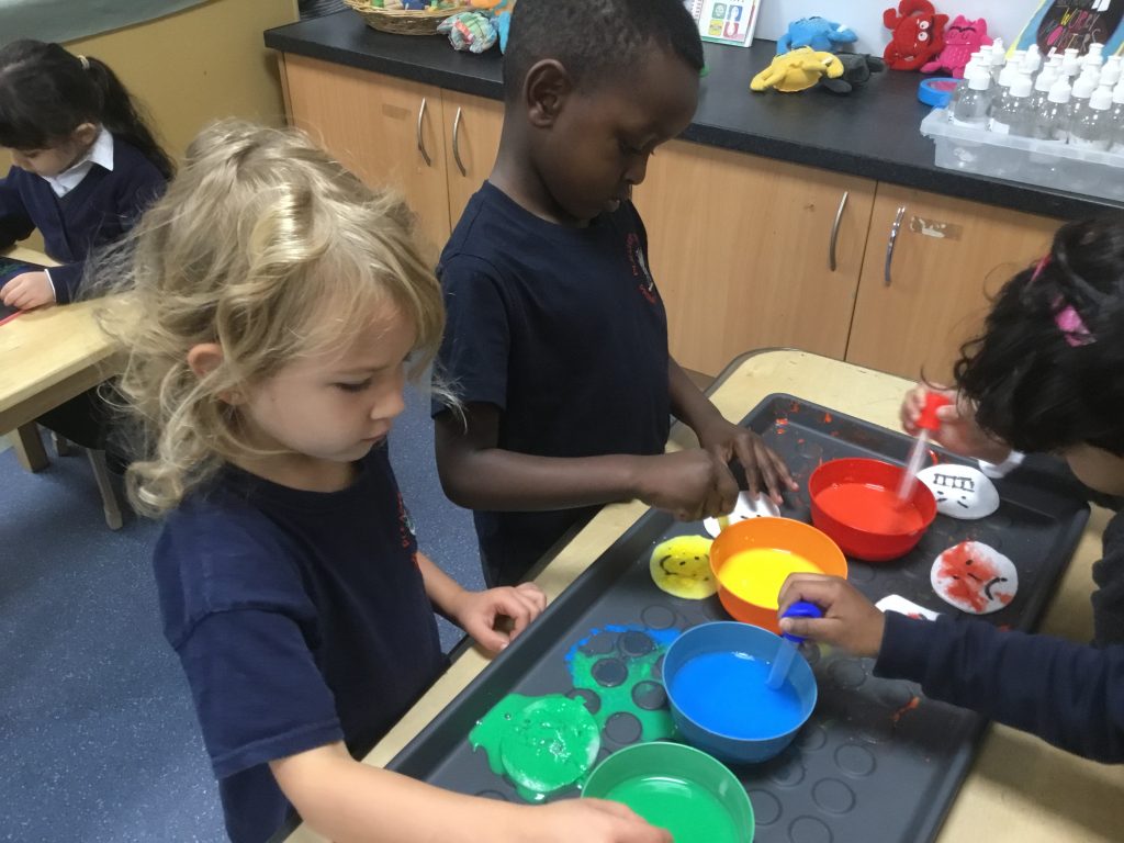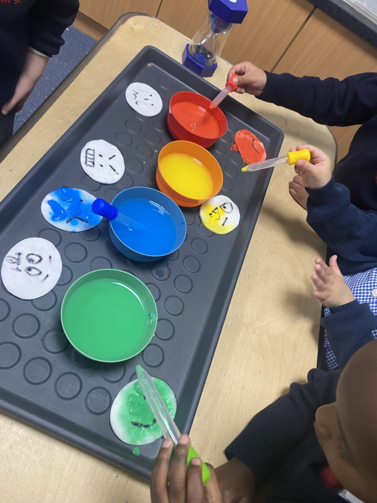 This week we read a story called ‘Big Feelings’. We discussed the zones of regulation and some steps we can take when we are in the blue and yellow zone. In provision we used paint to match expressions to the zones colours.