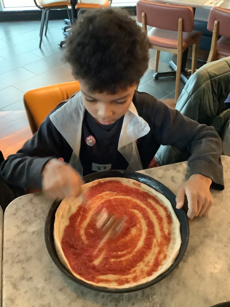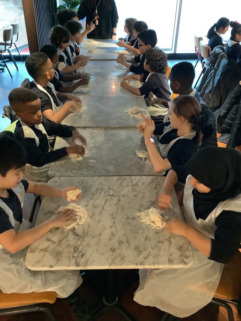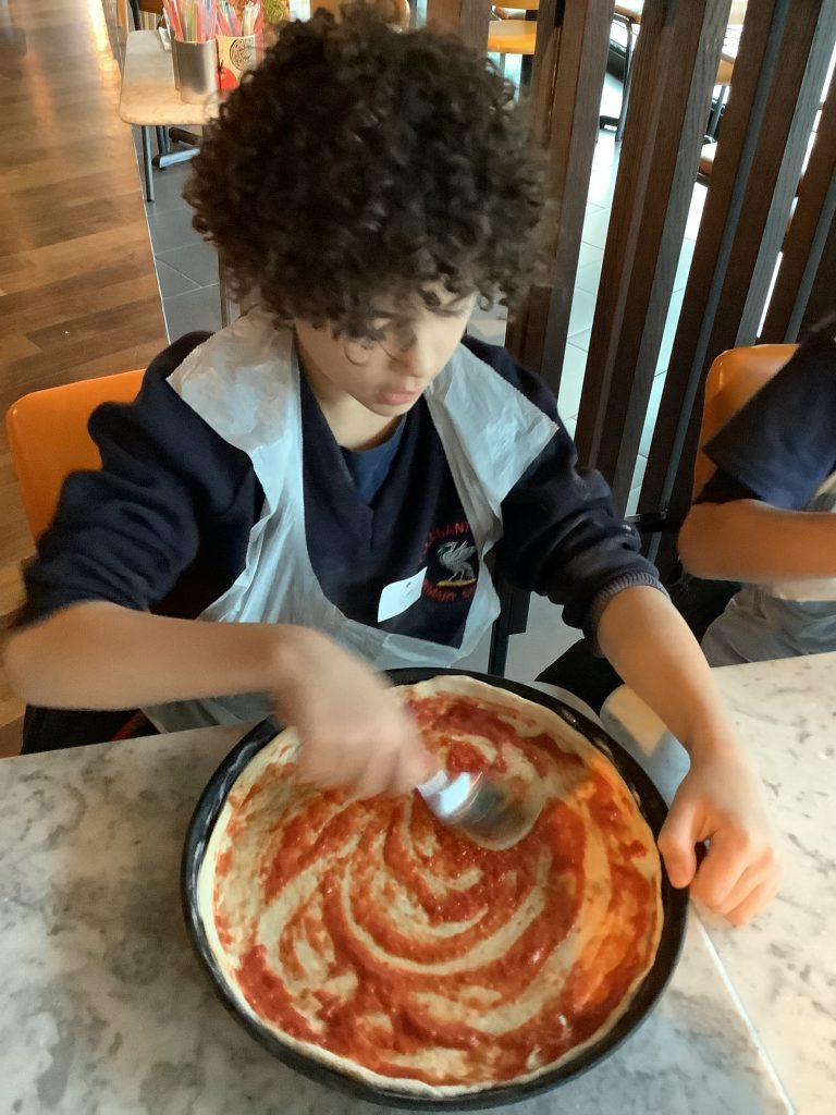 Today, Year 4 visited Pizza Express to take part in a pizza-making workshop. The children had a fantastic time learning about the full process of making a pizza, from preparing the dough to choosing and adding toppings. They explored the technical skills involved, such as measuring ingredients, following instructions carefully, and working step by step in the correct order. The children also learned about kitchen hygiene, teamwork, and the importance of patience and precision to achieve a good final result. It was a fun and engaging experience that helped develop both their practical skills and their understanding of how food is prepared.