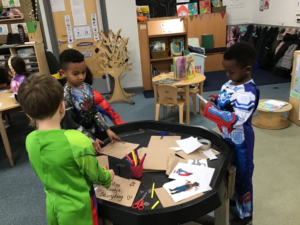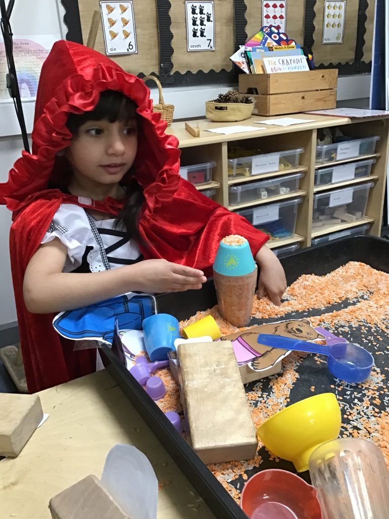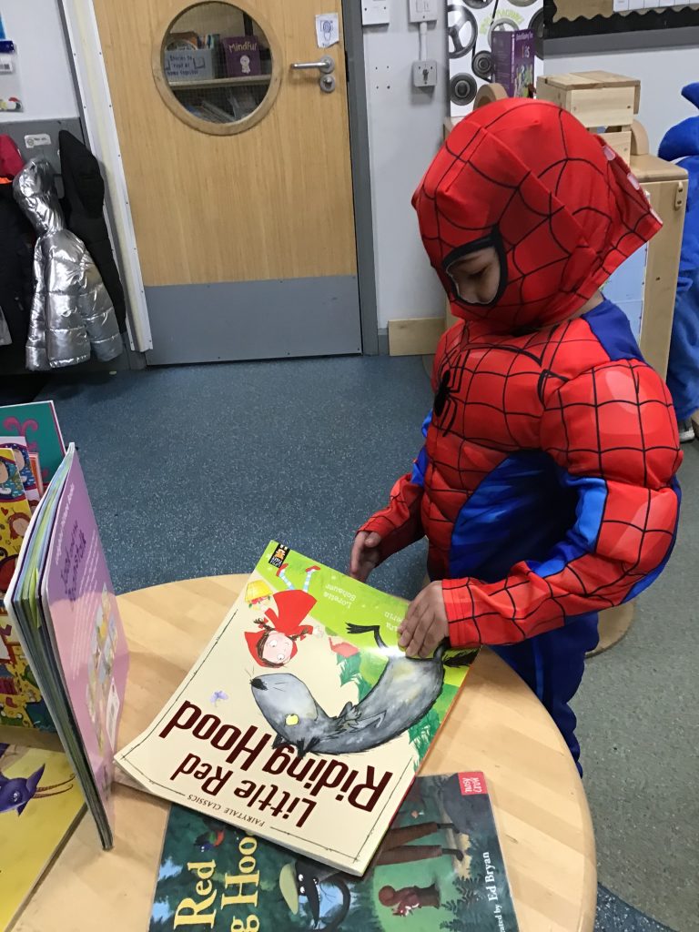 The children in Reception had a fantastic day celebrating World Book Day. We enjoyed dressing up as a story character and exploring the classroom which was filled with exciting fairy tale story activities. We made story bags, built the Three little pigs house, mixed porridge for Goldilocks, looked at story books, had a fairytale tea party in the home corner, went on a fairytale treasure hunt in the garden and made our own story books. Then Little Red came to visit us and answered lots of our questions about the Big bad wolf and Grandma. What an exciting day !