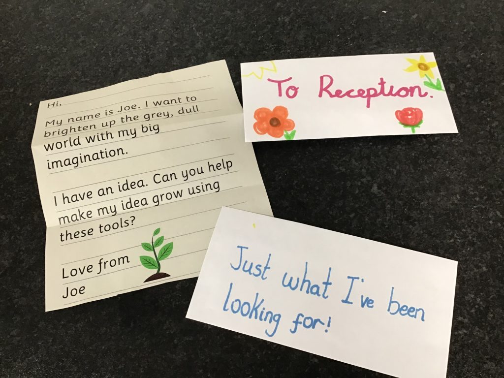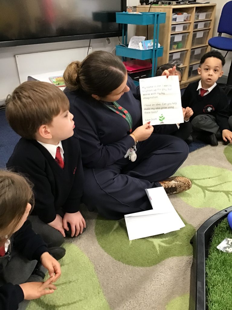 Reception received a surprise envelope today, containing a letter from Joe and a packet of seeds. The children explored the gardening tools and story props then we read the letter together and thought about what plants may grow from the seeds. The children suggested that we should plant the seeds and give them water and some sunshine to see if they grow into grass, sunflowers or trees. We are looking forward to reading the story, The Extraordinary Gardener and finding out who Joe is and what happens when he planted his seeds.