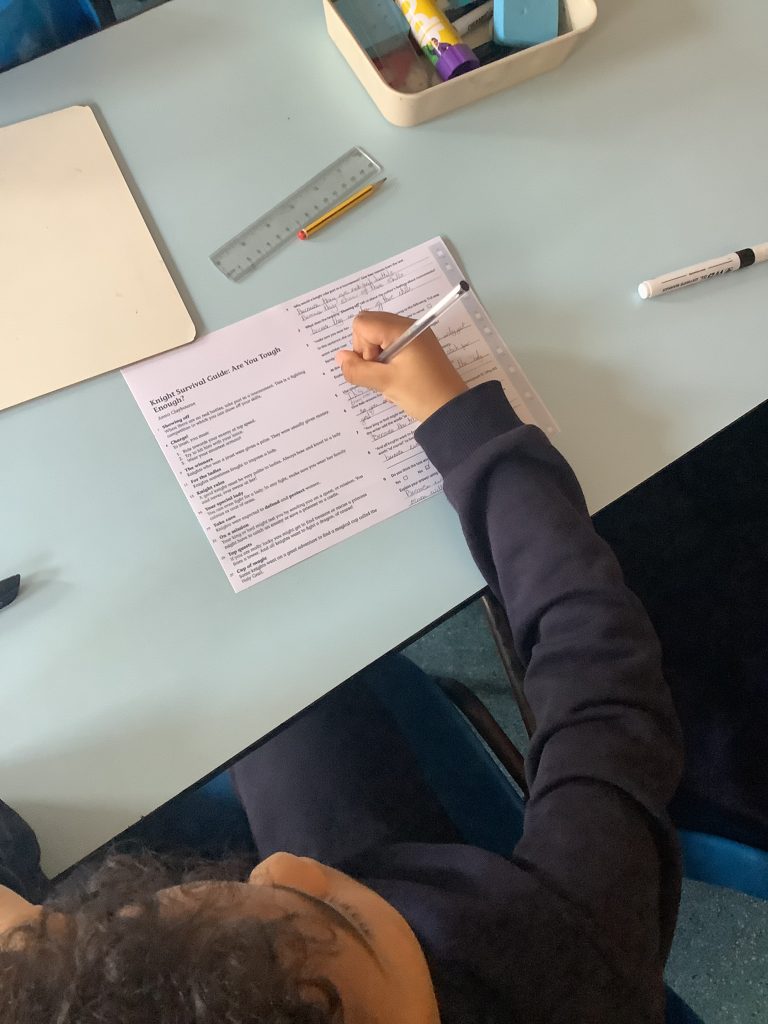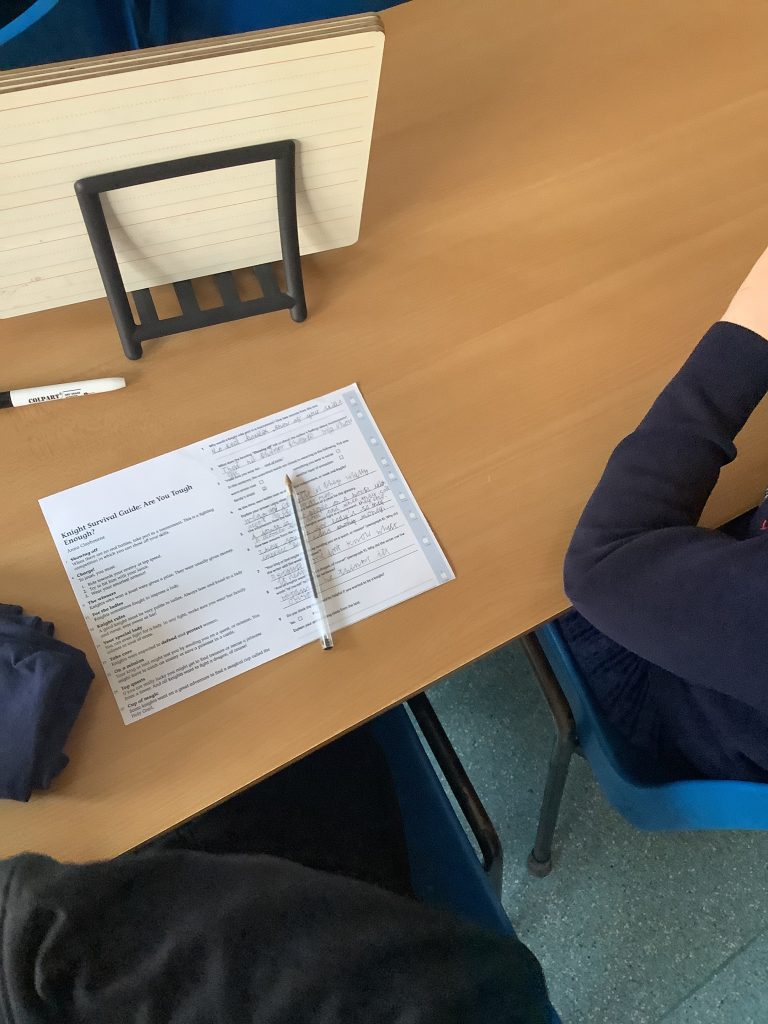 Today we did a comprehension task about a story called “Knight Survival Guide: Are you tough enough?”. This was good to read and learn about something new to build our comprehension. We also answered some questions to show our understanding.