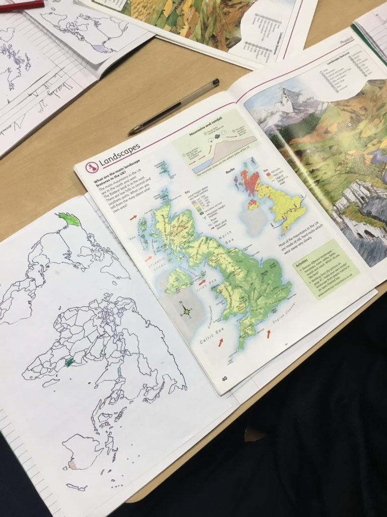 Class 3 have been learning about the four tallest peaks in the UK. Using maps and atlases, they located and labelled the highest mountains in England, Scotland, Wales and Northern Ireland. The children coloured each country differently, then marked the position of each peak on their maps. This helped them understand UK geography, develop map-reading skills, and learn how physical features like mountains are shown on maps.