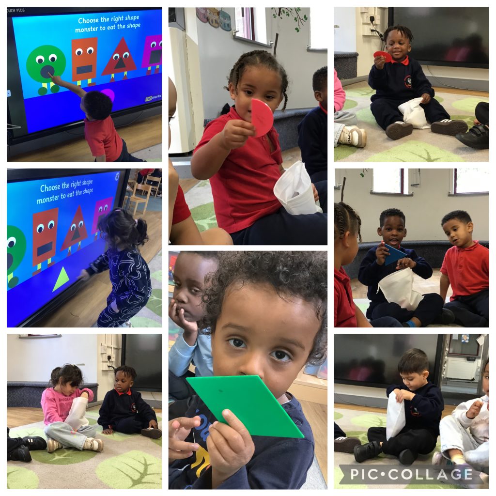 In Nursery, the children have been exploring 2D shapes through fun, hands-on activities. They have been learning to name and describe shapes such as circles, squares, triangles and rectangles, using words like sides, corners and round.