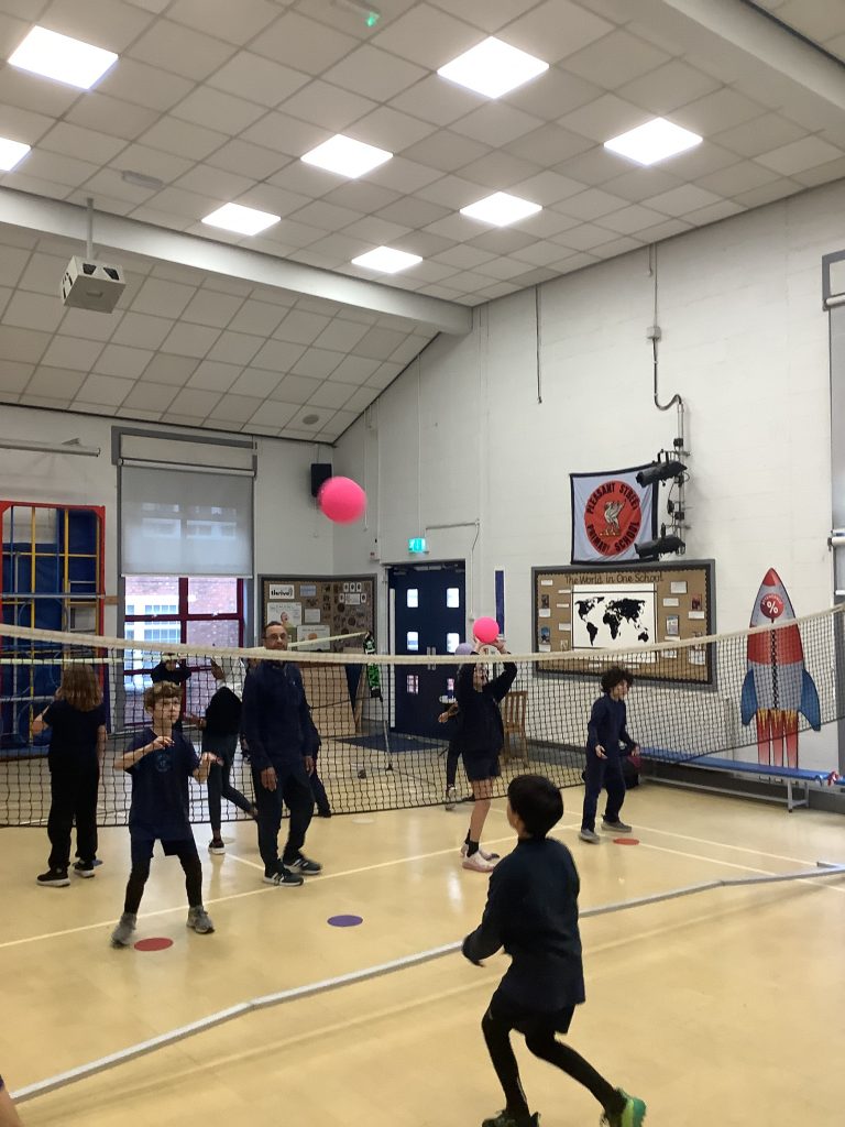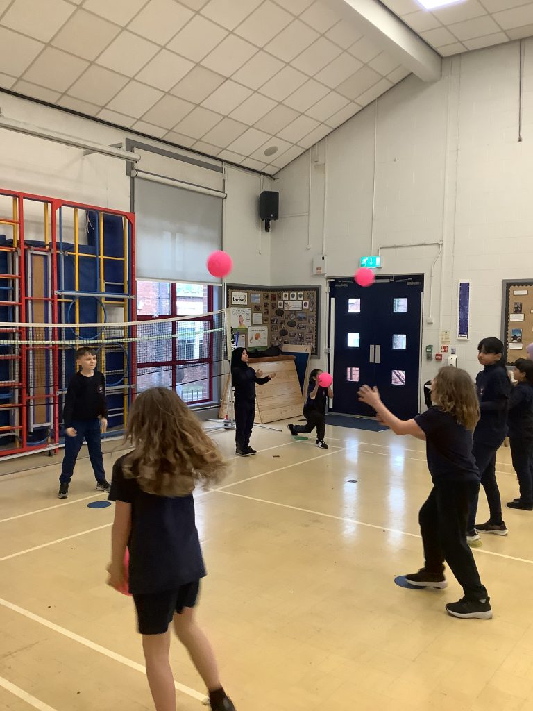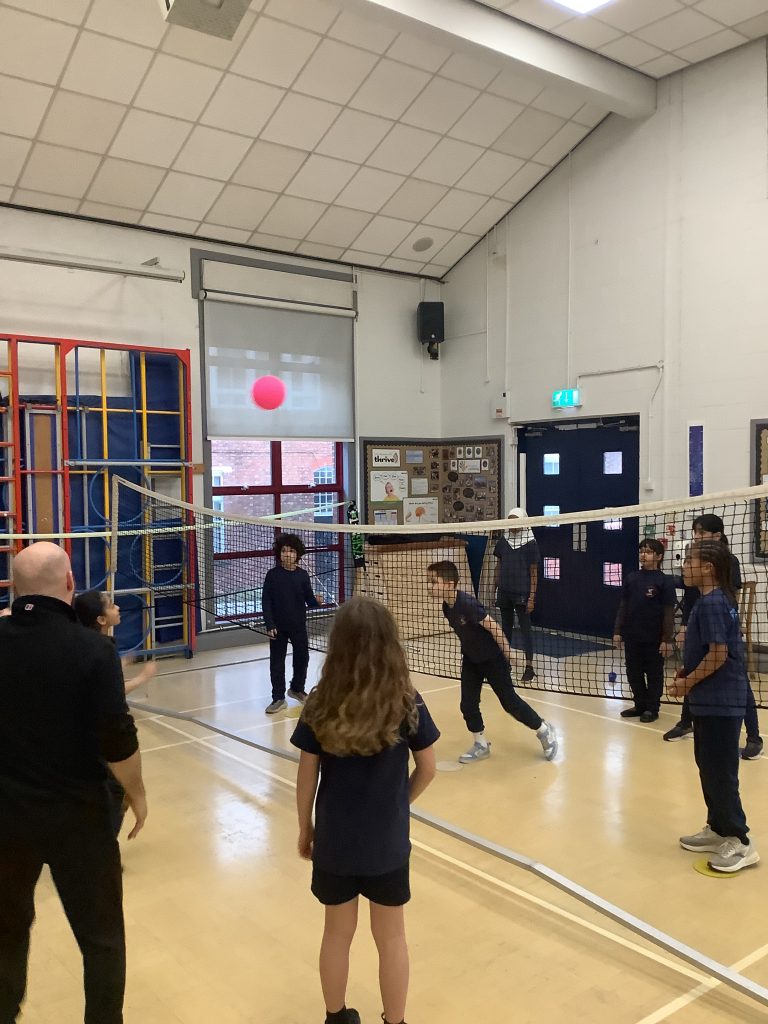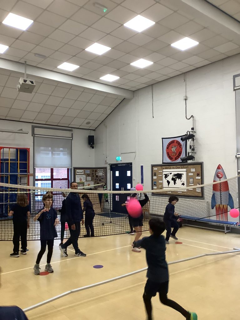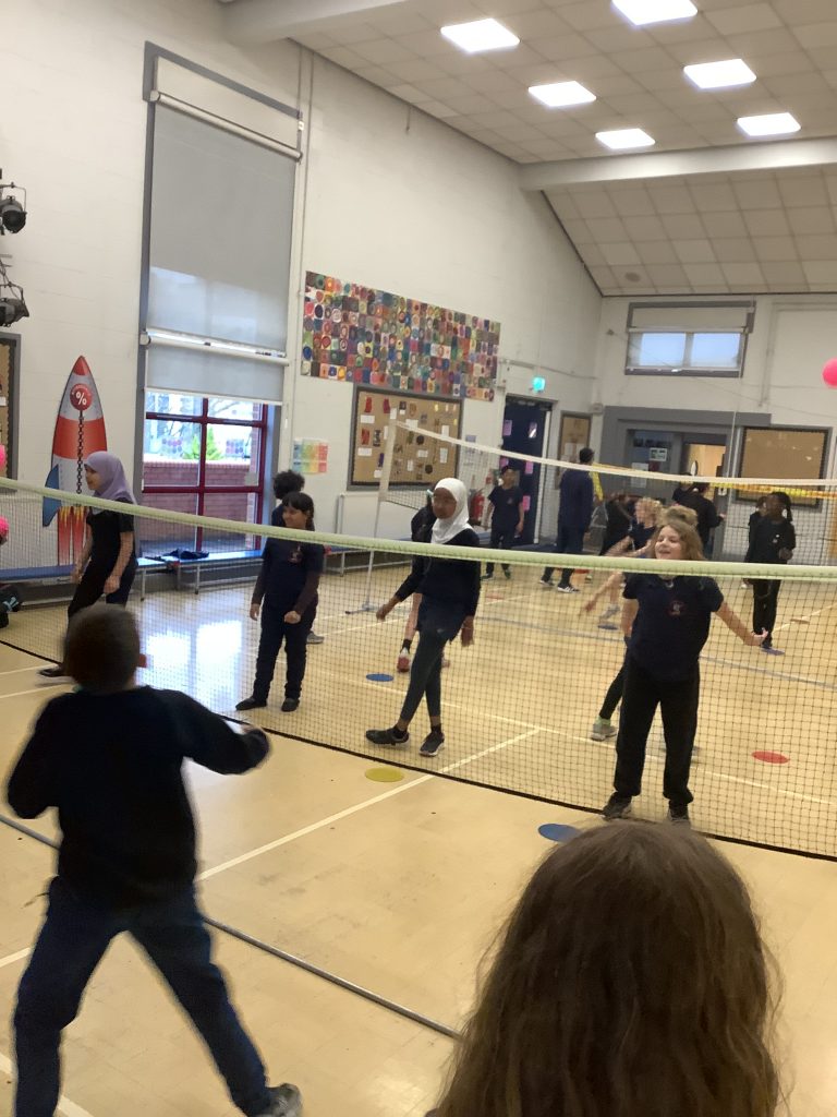 Class 6 are showing off new skills in P.E today. Learning all about badminton and working in teams for some friendly competition.