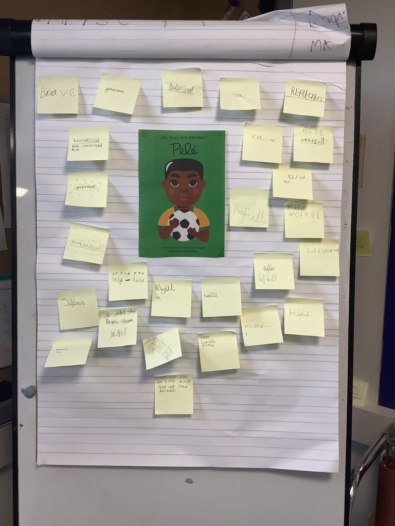 Today we had a story about the footballer Pele. We read the story and watched a video about him and then discussed his life and everything he went through to get to the place he was. This was interesting to see that footballers/ people who play sports can struggle to get where they want to be.