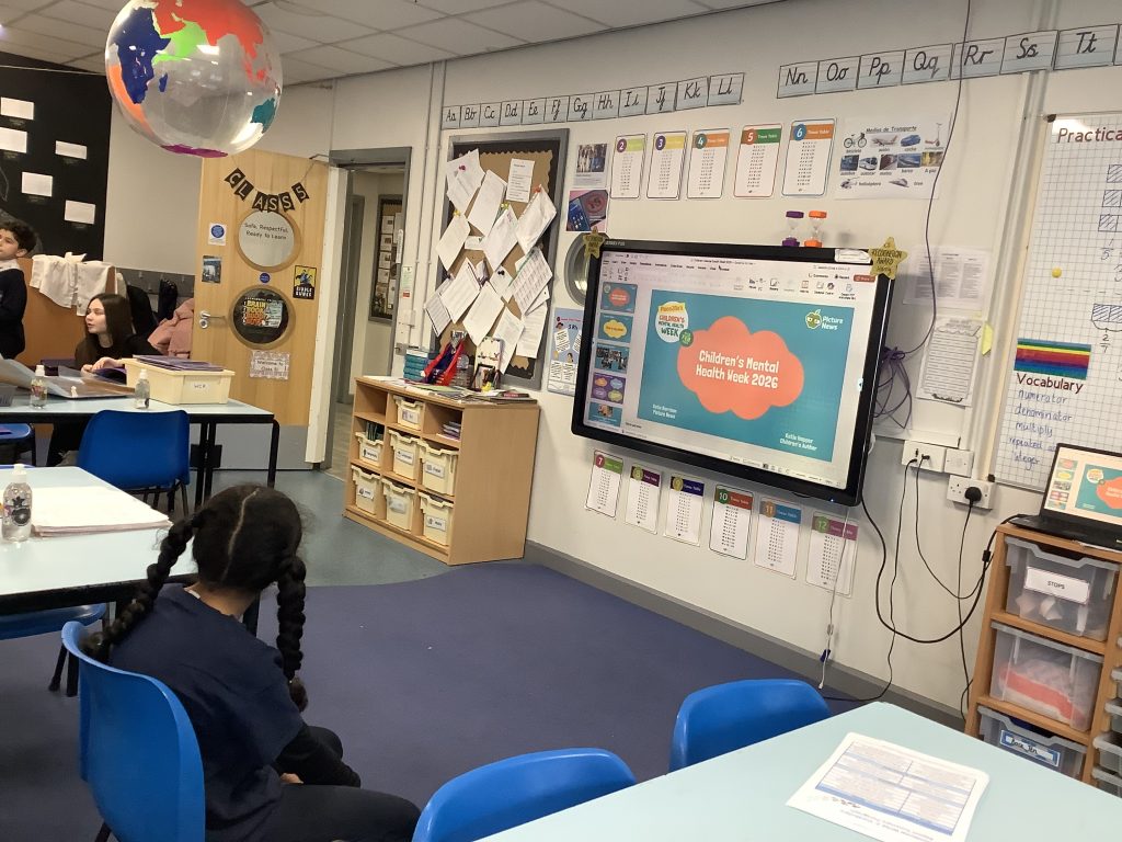 The children discussed the importance of mental health today as part of Children’s Mental Health Week, watching an online assembly.