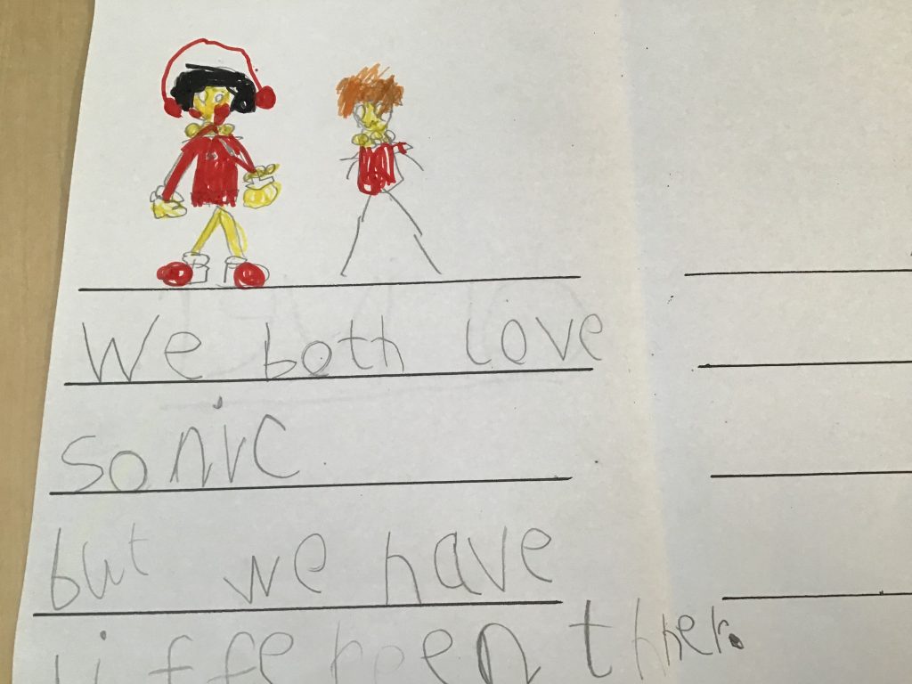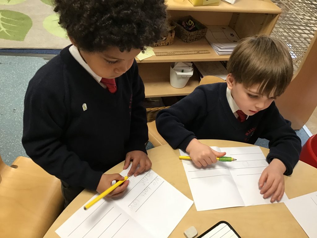 The children listened to a story called Super Me by Sam Usher and Charissa Coulthard, we then thought about how we are all super and what makes us super. The children took turns to speak about what makes them special saying “I am super because -.” Then the children used the phonic knowledge to write a sentence about how they are super.