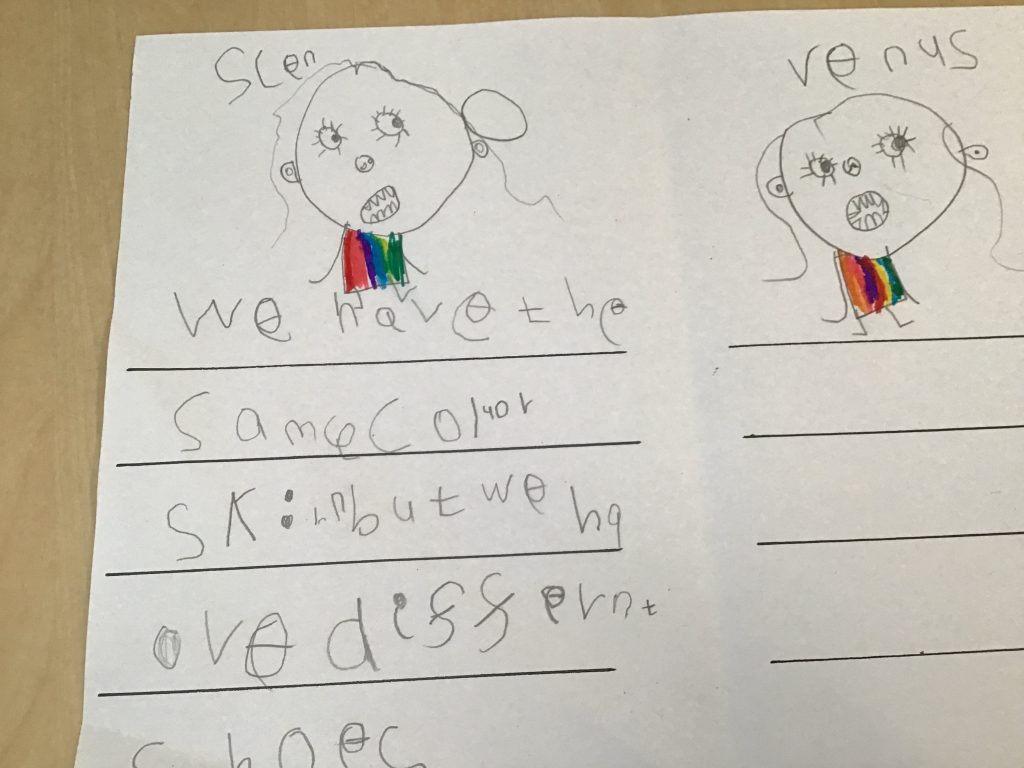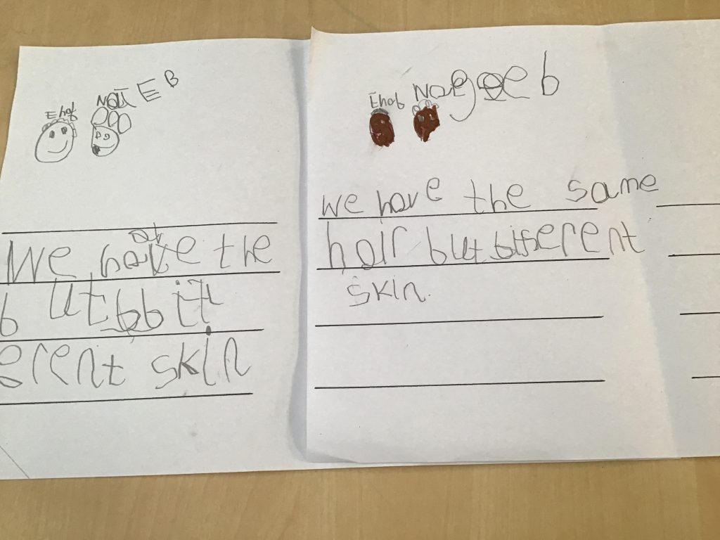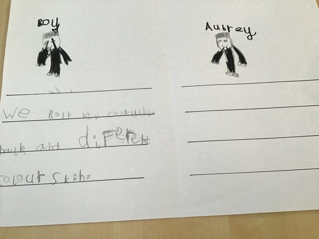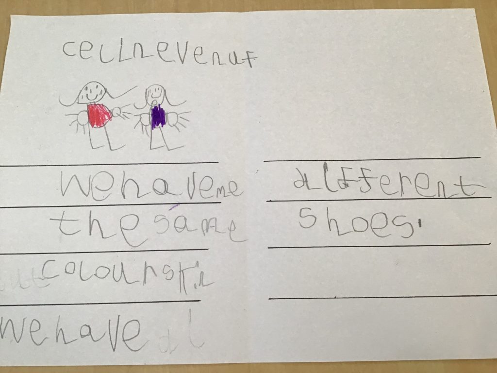 For Diversity Day we listened to a story called The same but different by Karl Newson and Kate Hindley. We talked about how we may have differences but how in many ways we are the same, we all feel happy and we can all feel sad sometimes and talking to our friends can make us feel better. Then the children worked with their partner to discuss their similarities and differences drawing pictures of each other and writing sentences about how we are the same and also can be different.