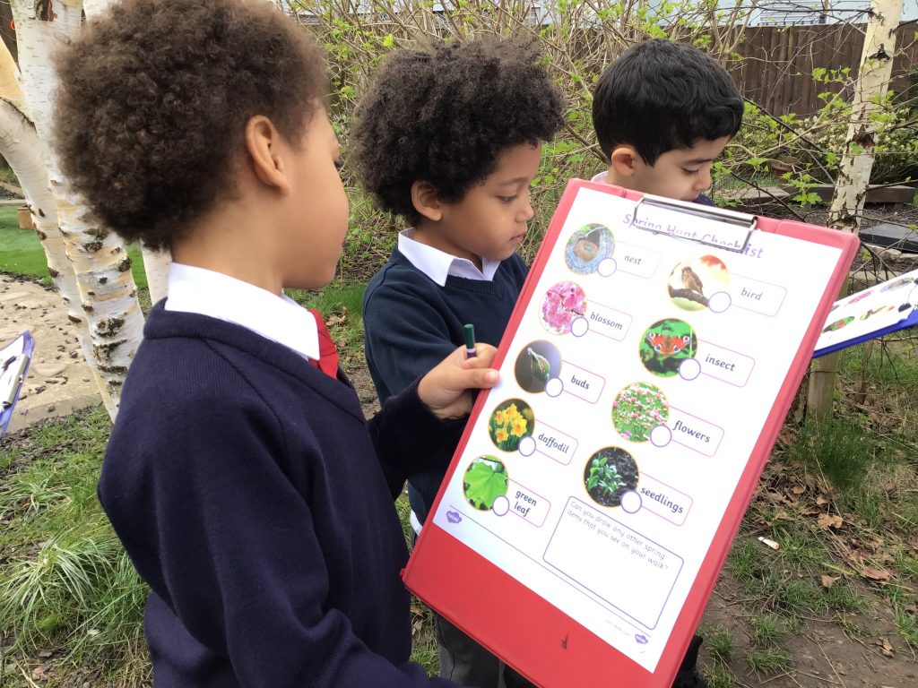 As the weather starts to become brighter Reception explored in the garden area today some changes in spring. With the help of a checklist, the children observed what has changed to some of the garden so far and what they might see start to grow.