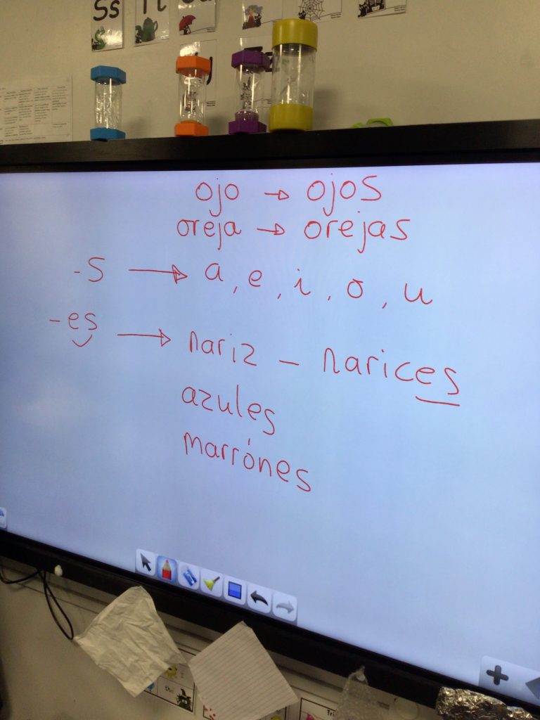 Today we went over our term topic “our emotions” in Spanish. We also read a story about a little monster who didn’t like to brush his teeth. The story had parts of our face and colours in and we learnt the difference between male and female words.